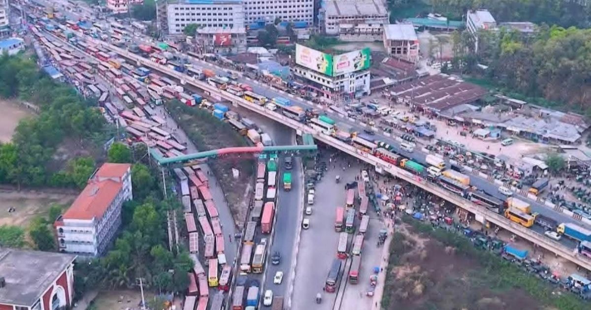 গাজীপুরের কোনাবাড়ী, কালিয়াকৈর ও আশুলিয়া এলাকার শিল্পকারখানাগুলো একযোগে ছুটি হওয়ায় ঢাকা–টাঙ্গাইল মহাসড়কে প্রায় ৩৫ কিলোমিটার দীর্ঘ যানজটের সৃষ্টি হয়েছে।
