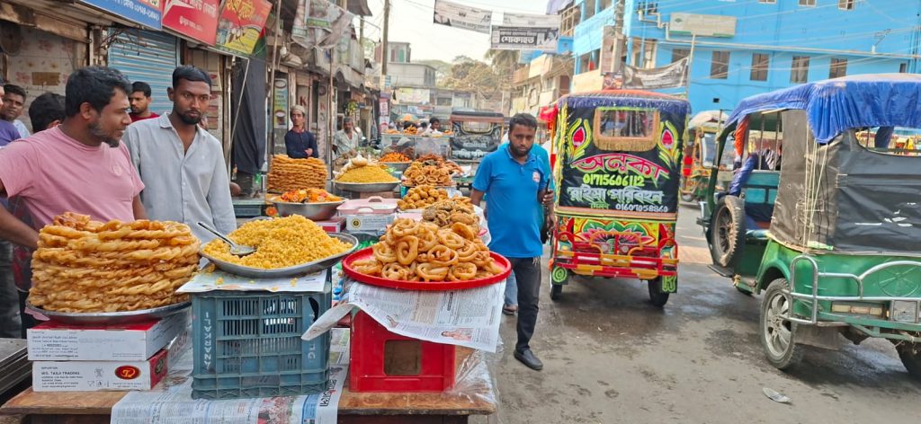 আশরাফুল আলম সজিব, অমৃতালোক: পবিত্র মাহে রমজানকে কেন্দ্র করে ভোলা শহরের বিভিন্ন সড়ক ও ফুটপাতে জমে উঠেছে ইফতার সামগ্রীর জমজমাট বেচাকেনা। তবে এসব ইফতার সামগ্রী বিক্রি হচ্ছে চরম অস্বাস্থ্যকর ধুলাবালির পরিবেশে। ধুলাবালি, যানবাহনের ধোঁয়া ও পথচারীদের ভিড়ের মাঝেই খোলা অবস্থায় রাখা হচ্ছে পেঁয়াজু, বেগুনি, জিলাপি, ছোলা ও অন্যান্য ভাজাপোড়া খাবার। শনিবার (২১ ফেব্রুয়ারী) বিকেলে সরেজমিনে […]