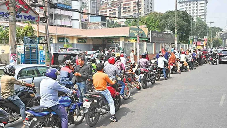 রাজধানীর পেট্রোল পাম্পগুলোতে তেল নিতে এখনো দীর্ঘ অপেক্ষা